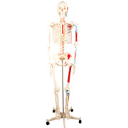這款經(jīng)濟型的、真人大小的、關(guān)節(jié)相連的人體骨骼模型是基礎(chǔ)解剖教學(xué)的理想模型,物美價廉。手臂和腿部可拆下供研究。顯示神經(jīng)分支、脊椎動脈和腰椎間盤等。整體模型在人體全身骨骼模型的基礎(chǔ)上的半邊進行肌肉附著點著色。