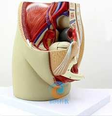 這個真人大小的模型,可拆分三部分組成,展示了女性盆腔系統(tǒng)的所有重要結(jié)構(gòu),并且非常詳細地展示了腹腔和骨盆肌,女性泌尿生殖系統(tǒng)的內(nèi)部結(jié)構(gòu)非常詳細描繪。全部手工上色,并且配有數(shù)字指示標識
