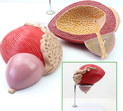 該模型采用高倍放大(放大3倍)模型,中間縱切打開,詳細(xì)的展示了膀胱的各個(gè)解剖結(jié)構(gòu),及周圍組織,清晰的展現(xiàn)了,膀胱壁 漿膜層以及肌肉層和粘膜層的解剖結(jié)構(gòu)及生理特征,并且也展示了尿道內(nèi)口,前列腺,以及部分輸精管結(jié)構(gòu),是泌尿生殖教學(xué),學(xué)習(xí),醫(yī)患溝通不可多得的一款精品模型。