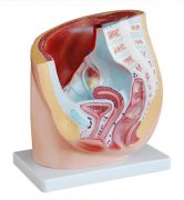 女性矢狀解剖模型作矢狀切面,顯示女性內(nèi)生殖器、子宮體、陰道和子宮闊韌帶等。供醫(yī)科學(xué)校講課時作直觀教具用。用PVC制成,安放于塑料座上。