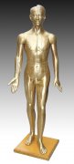 這款青銅色的模型非常詳細(xì)地標(biāo)明了14條主要經(jīng)絡(luò)線,身體右側(cè)是361個(gè)經(jīng)穴和48個(gè)經(jīng)外穴以及骨度線,即用“寸”來方便地測(cè)量針灸點(diǎn)之間的距離。身體左側(cè)是皮下組織,顯示神經(jīng)系統(tǒng)分布、動(dòng)靜脈、血管和肌肉構(gòu)造,還標(biāo)明了在主要經(jīng)絡(luò)線上沒有標(biāo)明的手足部的經(jīng)外穴。適用于中醫(yī)教學(xué)、針灸和推拿等。用玻璃鋼制成。尺寸:178CM高。