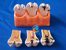 4倍自然牙的大小,展示齲齒發(fā)展的三個(gè)階段牙為進(jìn)口樹脂,座為進(jìn)口水晶膠制作而成。