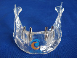 水晶仿真下頜骨內(nèi)植入4顆種植體,植體基臺可拆,配六角扳手;植體定位齦下