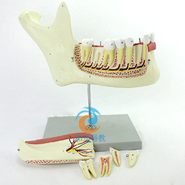 該模型采用放大設(shè)計(jì),放大三倍,可分為6個(gè)部分來顯示一個(gè)成人半下頜骨的所有特點(diǎn)。